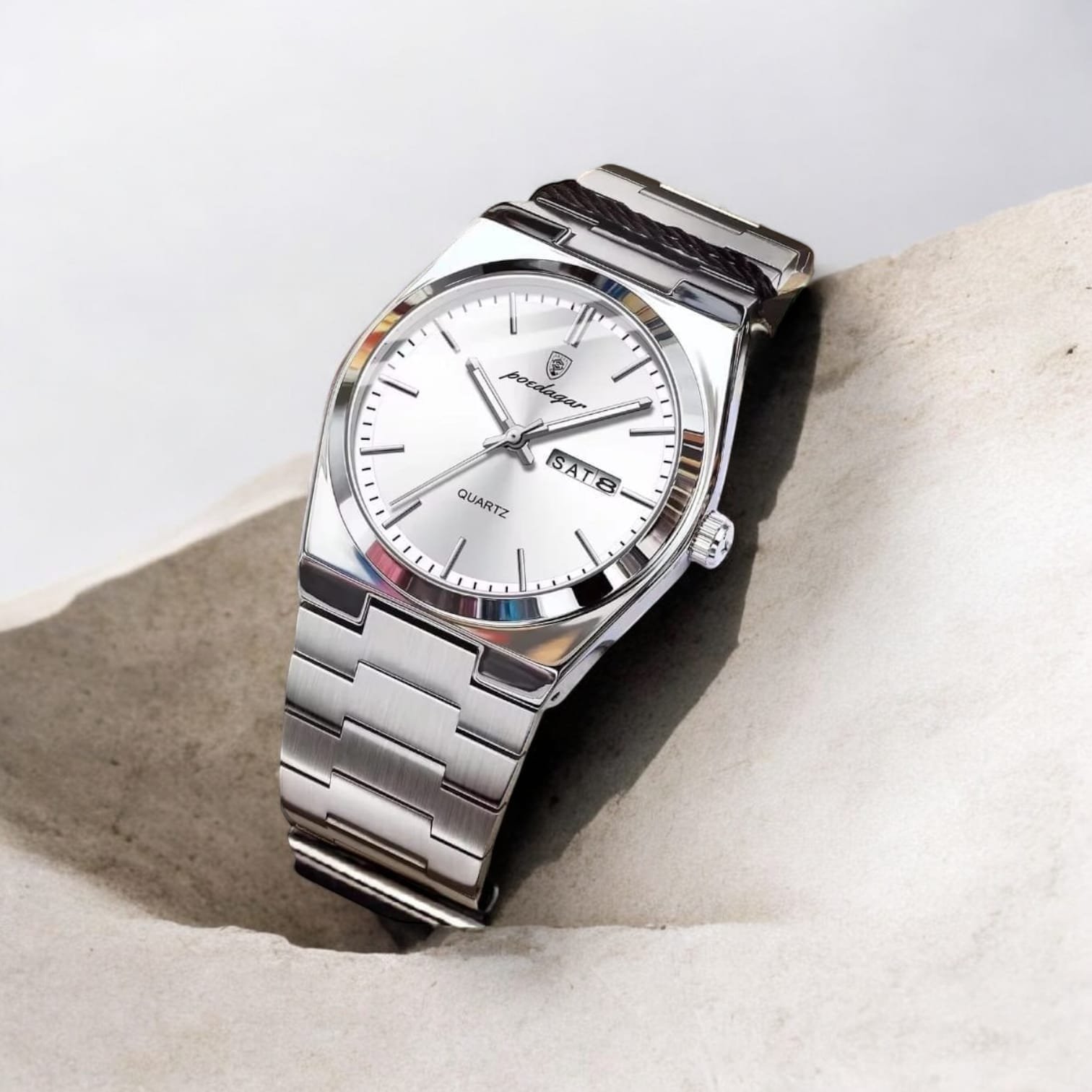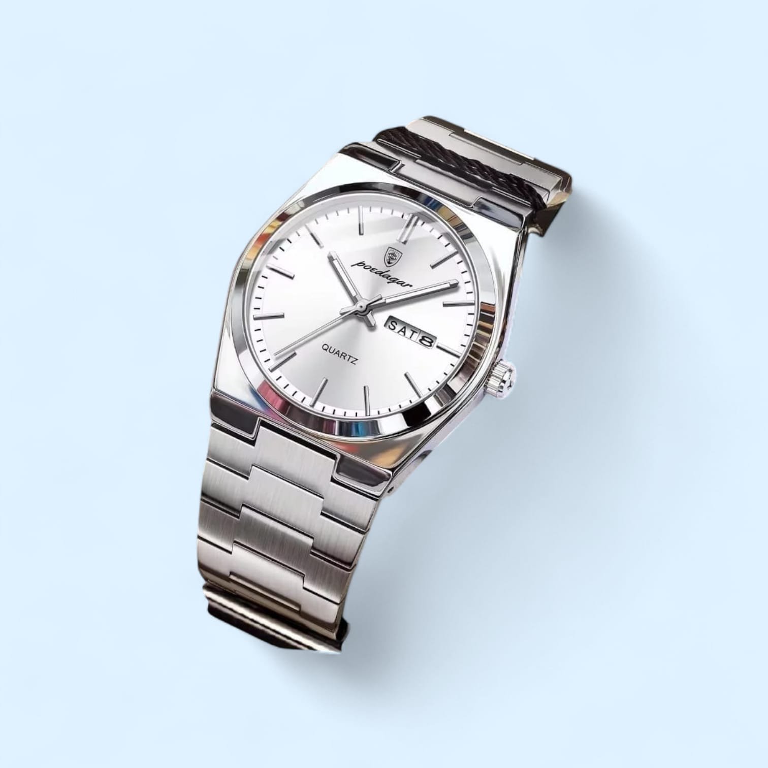 RELOJ FONDO BLANCO. NIKELADO COM CRITAL DE SAFIRO, A PRUEBA DE AGUA Y COM BROCHE ESTILO MARIPOSA!
